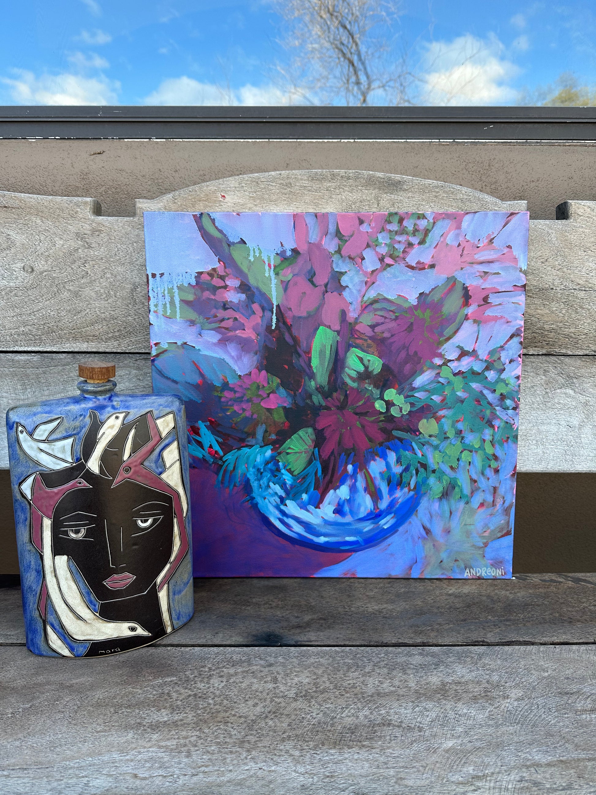 In Michigan, these flowers stay pink all summer and into the fall. I was inspired to paint them because their blossoms seemed to be bursting out of their stems. They reminded me of fireworks. I love the colors I see in autumn. What’s your favorite season?